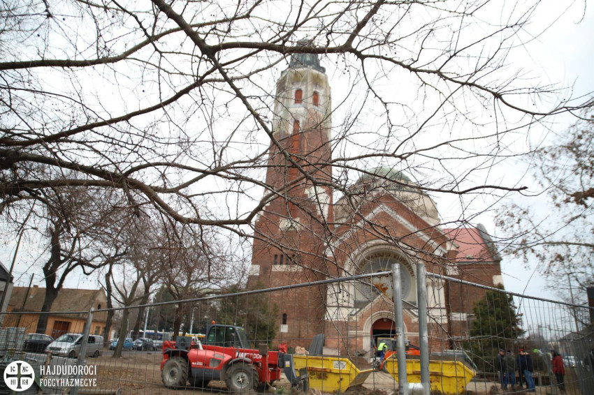 Akik a környéken járnak, már tapasztalhatták a változást: lezárták a templom környékét, munkagépek állnak az udvaron, és már felállványozták az épületet is. A templomtérben tizenkét méter magasságig fel van újítva és le van tisztítva a vakolat. Két méter magasságig pedig lélegző vakolatot helyeztek fel a szakemberek – számolt be róla a kivitelező részéről Gál Attila.