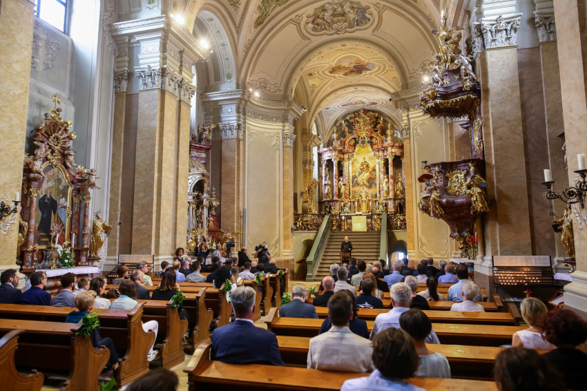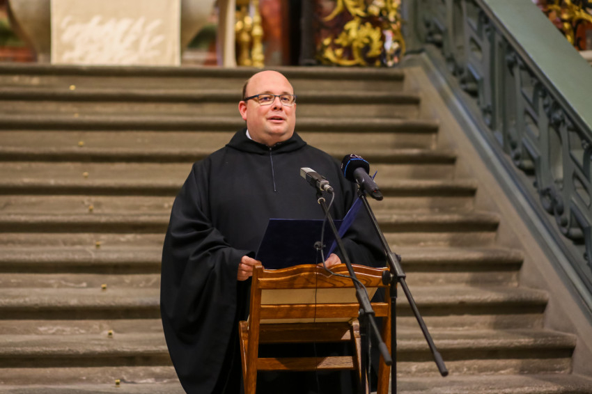 Az ünnepség az apátsági templomban kezdődött, ahol Barkó Ágoston OSB a tihanyi bencés apátság szerzetesi közösségének nevében köszöntötte a megjelenteket.