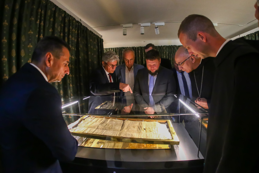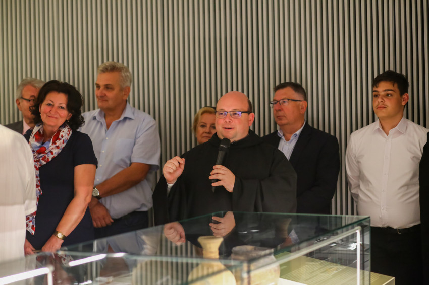 Magyarország első, eredeti állapotában fennmaradt okmányát Dénesi Tamás és Szlavkovszky Mariann történész, muzeológus, a most megnyíló kiállítás kurátora helyezte be a vitrinbe. Jeromos atya külön megköszönte Hortobágyi Cirill főapátnak, Dejcsics Konrád kulturális igazgatónak, Dénesi Tamás levéltár-igazgatónak, hogy „hazalátogathatott keletkezési helyére az egyik első magyar nyelvi emlékünk: ez erősíti monostoraink között a testvéri közösséget is”.
