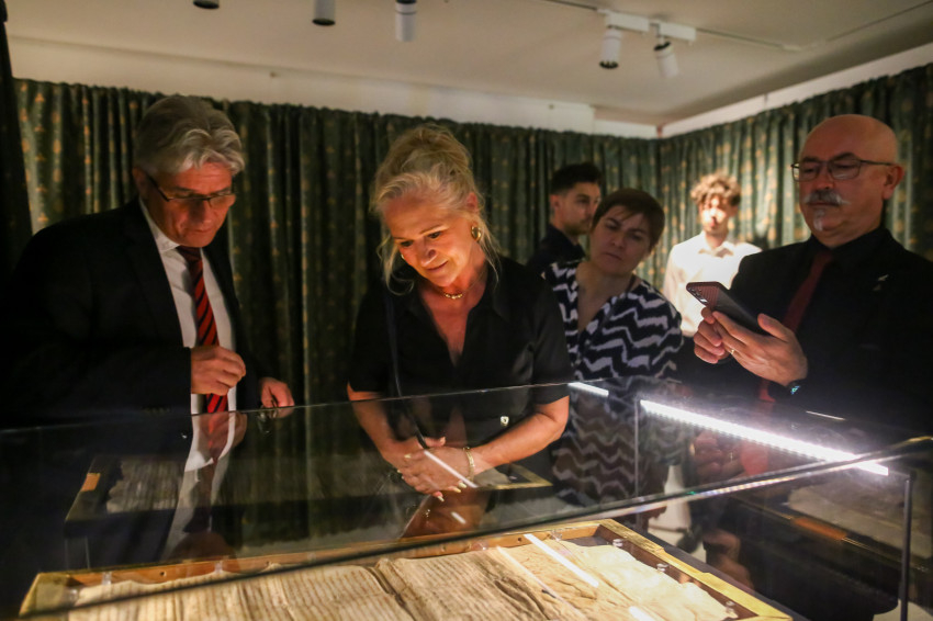 Vince Máté, közgyűjteményekért és kulturális fejlesztésekért felelős helyettes államtitkár beszédében arra mutatott rá, hogy a Tihanyi alapítólevél nem csupán írásos emlék, Magyarország első, eredetiben fennmaradt okmánya, hanem identitásunk egyik legerősebb, legfontosabb része. Nem véletlen, hogy ebben a nehéz időben kerül kiállításra.