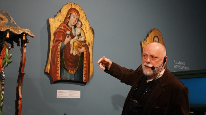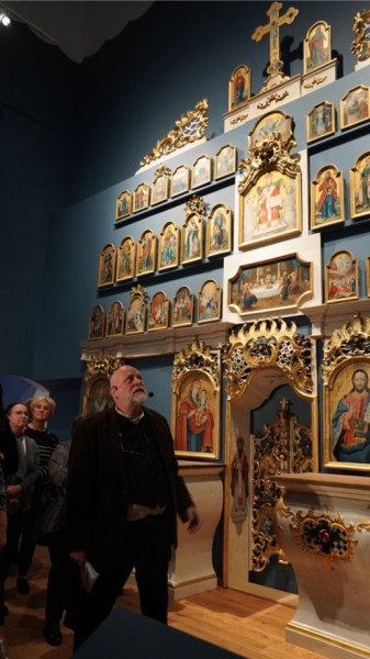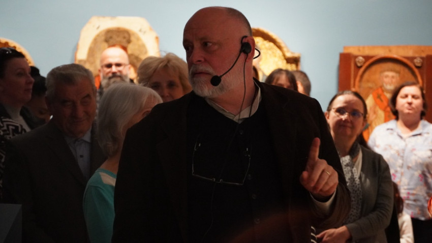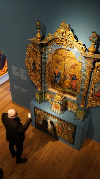 A festőművész a teremben látható ikonokon, festményeken és liturgikus tárgyakon keresztül mutatta be a több száz évvel ezelőtt alkotó festők üzenetének lényegét, melynek szolgálatába úttörő színhasználatot is alkalmaztak. „Az avantgárd és az expresszionisták azt vallották, hogy felszabadították a színeket és a korábbi akadémikus festészetet fölváltották a tiszta színekre, és kitalálták a komplementert, a valőrt és így tovább. Ezeket a képeket nézve bátran kijelenthetjük, hogy az avantgárd meg az expresszionisták semmi újat nem találtak föl, sőt ezek a képek forradalmian újak, olyan színelméletről és színtudásról tanúskodnak, hogy föltehetjük a kérdést: mi is akkor a modernség?