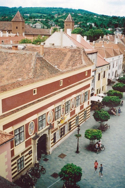 A Fő téren – ahova naponta begyalogoltunk a Kálvária utcai szállásunkról – egy békét árasztó, remek hangulatú kisváros mindennapjainak részesei lehettünk. Jólesett megpihenni az éttermek, cukrászdák teraszán, s belefeledkezni a kovácsoltvas cégérek, a hívogató kirakatok látványába, vagy esténként élő térzenét hallgatni. S időnként betérni egy-egy borudvarba, hiszen Kőszeg szőlőtermő vidék; a hegy levét, a palackba zárt napsugarat sok helyütt megkóstolhattuk. Még a város borával is koccintottunk. Itt fedeztük fel a Csokiszegletet is – „E kőszegi szeglet csokiszeg lett” hirdeti a felirat –, melynek kirakatában a színes krétával rajzolt virágmotívumok mellett minden napra jutott egy figyelemre méltó idézet. Amikor arra sétáltunk, egy alkalommal Szabó Magda bölcsességét olvashattuk gyöngybetűkkel írva: „Úgy kell élni, hogy míg a világban forgolódunk, ne súroljuk le más emberről a bőrt.”