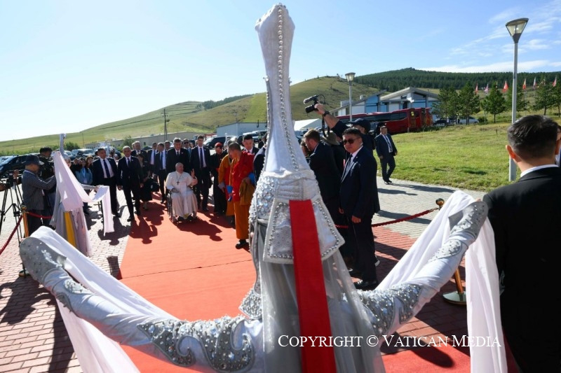 Szokásokaitokkal kapcsolatban beszéltem már arról, hogy amikor erre az útra készültem, lenyűgöztek a hagyományos lakóházak, melyek a mongol nép több évezredes történelme során leülepedett bölcsességéről árulkodnak. A jurta ugyanis emberi teret jelent: benne zajlik a család élete, a baráti együttlétnek, a találkozásnak és a párbeszédnek a helye, ahol, ha sokan vannak is, tudnak még helyet adni valakinek. Konkrét referenciapont is, mely könnyen felismerhető a hatalmas kiterjedésű mongol földterületen; a remény oka az eltévedteknek: ha van jurta, akkor van élet. Mindig nyitva áll, kész arra, hogy befogadja a barátot, de az utazót, sőt az idegent is, hogy megkínálja gőzölgő teával, mely erőt ad a téli hidegben, vagy friss erjesztett tejjel, mely enyhületet ad a forró nyári napokon. Ez a tapasztalata a más országokból érkező katolikus misszionáriusoknak is, akiket itt zarándokként és vendégként fogadnak, és akik lábujjhegyen lépnek be ebbe a kulturális világba, hogy alázatos tanúságot tegyenek Jézus Krisztus evangéliumáról.