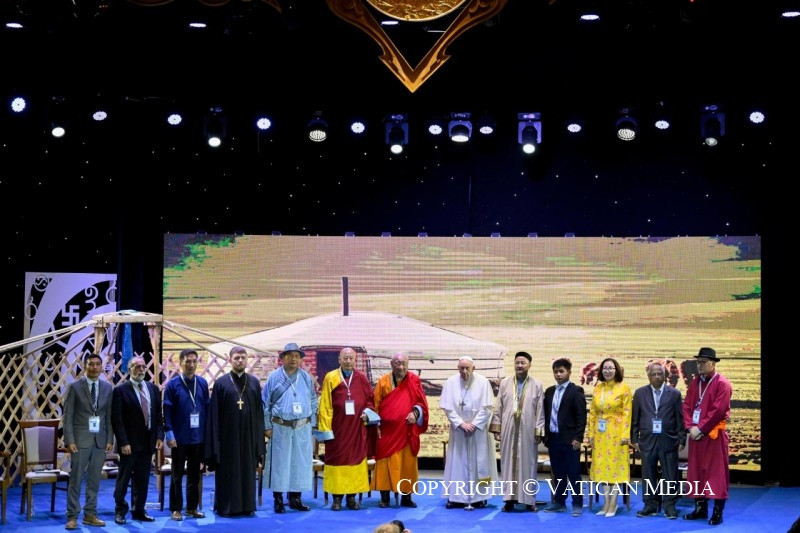 Annak lehetőségét, hogy együtt legyünk, hogy megismerjük és gazdagítsuk egymást, a szeretett mongol nép nyújtja számunkra, mely a különböző vallási hagyományok képviselői közötti együttélés történetével büszkélkedhet. Jó felidézni a Mongol Birodalom ősi fővárosának, Karakorumnak az erkölcsös tapasztalatát, ahol különböző „hitvallásokhoz” tartozó istentiszteleti helyek voltak, ami dicséretes harmóniáról tanúskodik. Harmónia: szeretném kiemelni ezt a jellegzetesen ázsiai ízű szót. Ez az a sajátos kapcsolat, amely a különböző valóságok között jön létre, anélkül, hogy az egyik föléje kerekedne a másiknak, és a kettő összemosása nélkül, inkább tiszteletben tartva a különbségeket és a közös élet javát szolgálva. Felteszem a kérdést: