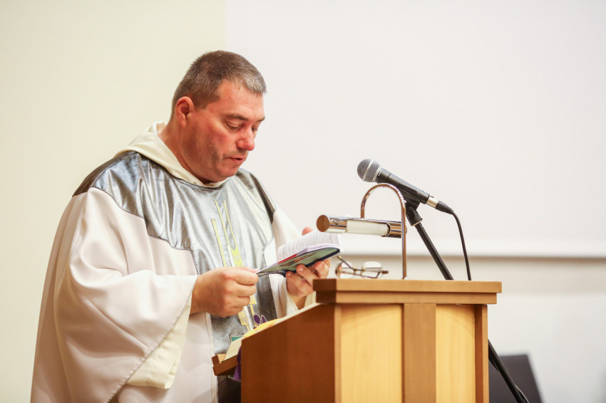 A szentmisét Varga Attila kiszombori plébános, a közösség papi testvériségének tagja; Szeidel Péter; Csernai Balázs, a veszprémi Regina Mundi-templom plébánosa, a főegyházmegye pasztorális referense, valamint Béri Renátó, a nagykanizsai Jézus Szíve Plébánia kisegítő lelkésze, a homokkomáromi kegyhely lelki vezetője mutatták be. Kallós Béla és felesége, Anita Nyíregyháza mellől érkeztek. A prédikáció után megújították a világiaknak létrehozott, évente esedékes „Bárány barátai” elköteleződésüket.