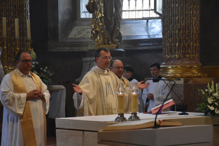 A mai alkalom különös nap számunkra, amikor a délelőtti órákban két diakónust és három áldozópapot szentelt Veres András megyéspüspök a Győri Egyházmegye szolgálatára – mondta a plébános. – A hivatás mindig ajándék és titok, ahogy ezt Szent II. János Pál pápa megfogalmazta. „Ennek a titoknak lettek befogadói és hordozói a mai napon szentelt testvéreink. De mi is – papok és hívők – egyaránt hordozzuk magunkban saját életünk hivatását.” Hálát adni jöttünk ezért a kőből épült templomért, amely Isten lakóhelye és az imádság otthona. Itt mindannyiunk lelke megnyugodhat.
