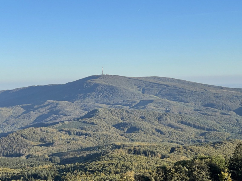 A kegyhelyről gyönyörű erdőkön át vezetett az út a 964 méter magas Galyatetőre. A bátrabbak felmentek a csodás panorámájú kilátóba is, ahonnan a szép tiszta időben nemcsak az Északi-középhegység vonulataiban, de még a Magas-Tátra csúcsaiban is gyönyörködhettünk. A teremtett világ csodálatos látványa hálaadásra késztetett bennünket, így főpásztorunk vezetésével áldást kértünk a környék lakóiért.