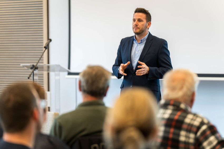 Az ebédet követően Csernai Balázs atya tolmácsolta a Pasztorális Iroda hirdetéseit, illetve a jelenleg szervezés alatt álló képzésekről, a Veszprémi Érseki Főiskola képzéseiről, valamint az érsekség honlapján indított Bódi Mária Magdolna hálanaplóról is szó esett. A továbbiakban Balázs atya osztotta meg gondolatait a testvérekkel. Szentírási példákon keresztül irányította a figyelmet a belső lelki hozzáállás fontosságára. Kiemelte, hogy világunk jelenleg a munka-fogyasztás-élmények csapdájában van.