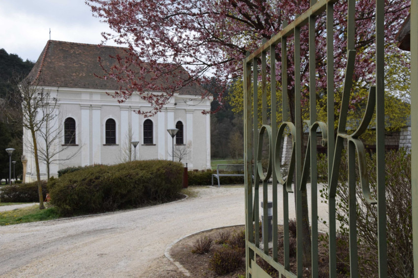 A város nyugati szélén, a Séd partján, a veszprémvölgyi apácakolostor helyreállított romjai felett, a Romkertben szabadon áll az úgynevezett jezsuita templom. A közelmúltban felújított épület egyszerű elrendezésű; egyhajós, sokszög záródású szentélye van, egyik oldalát kis sekrestye bővíti. A barokk stílusú épület, szemben a templomok középkorban oly általános keleti tájolásával nyugatra néz, bejárata a középkori kolostortemplom szentélyének helyén nyílik.