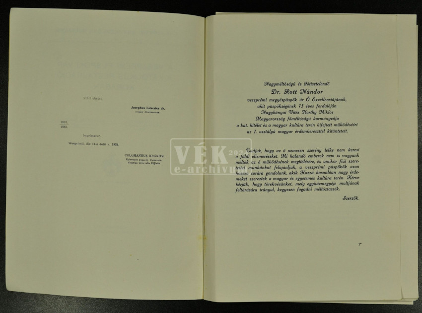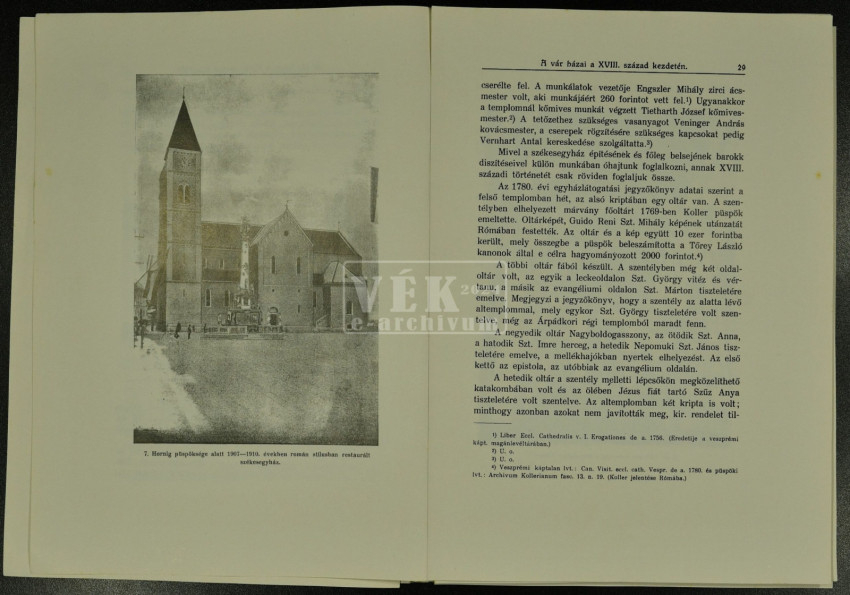 A könyv 1933-ban látott napvilágot, A Veszprémi Egyházmegye Múltjából sorozat első köteteként, amelynek szerzői kiválóan képzett egyháztörténész papok, akik hosszú évek alapos kutatómunkájával készítették el a sorozat nyitókötetét. Az igényesen megírt, alaposan lábjegyzetelt és képekkel illusztrált munka közérthető formában dolgozza fel Veszprém építészettörténetének fontos újkori fejezeteit.