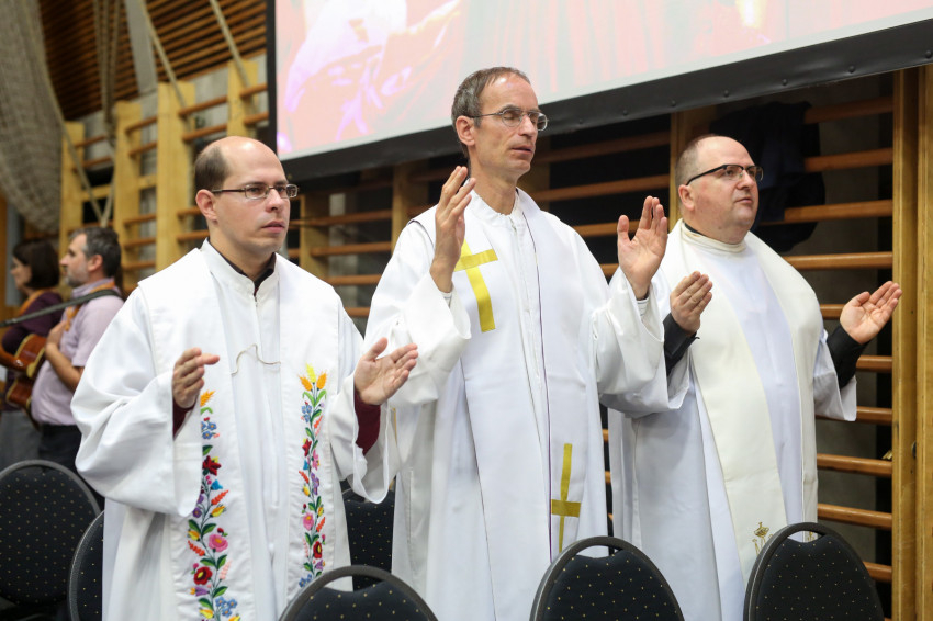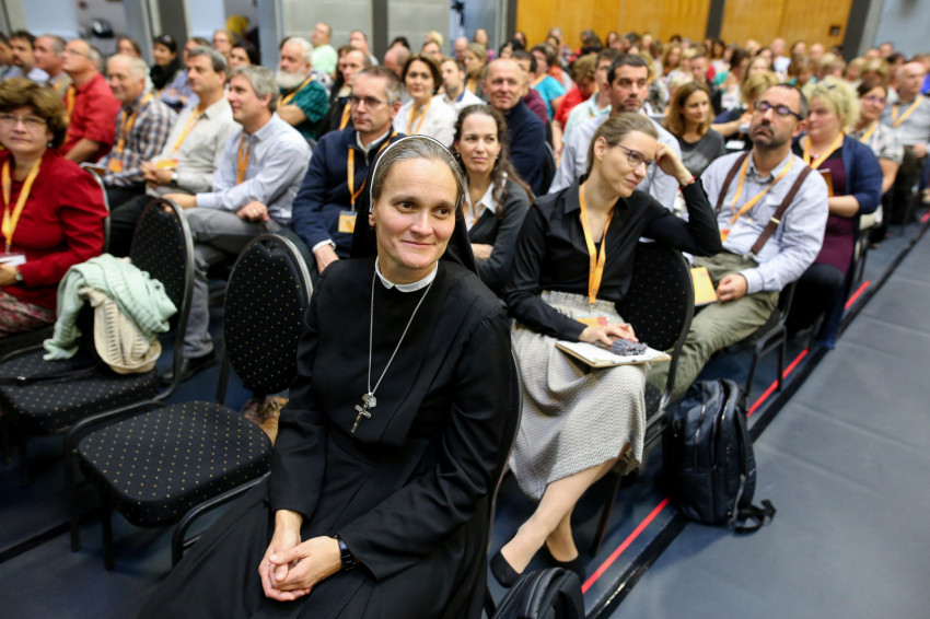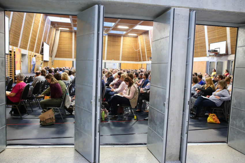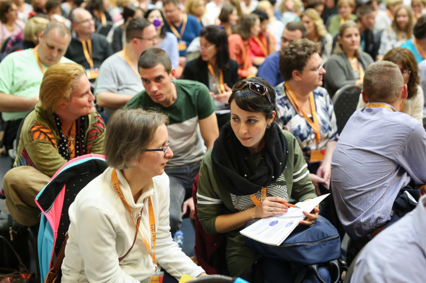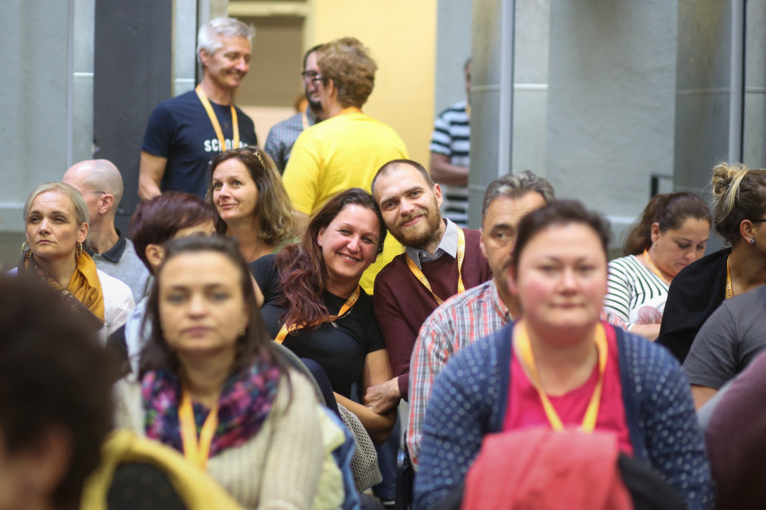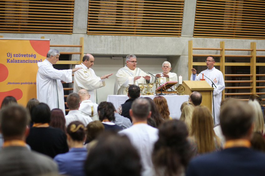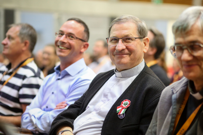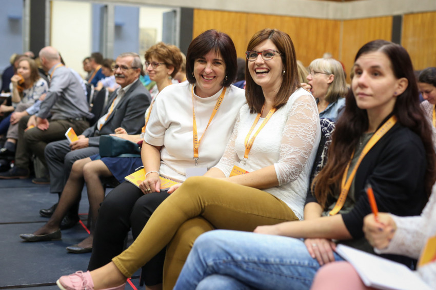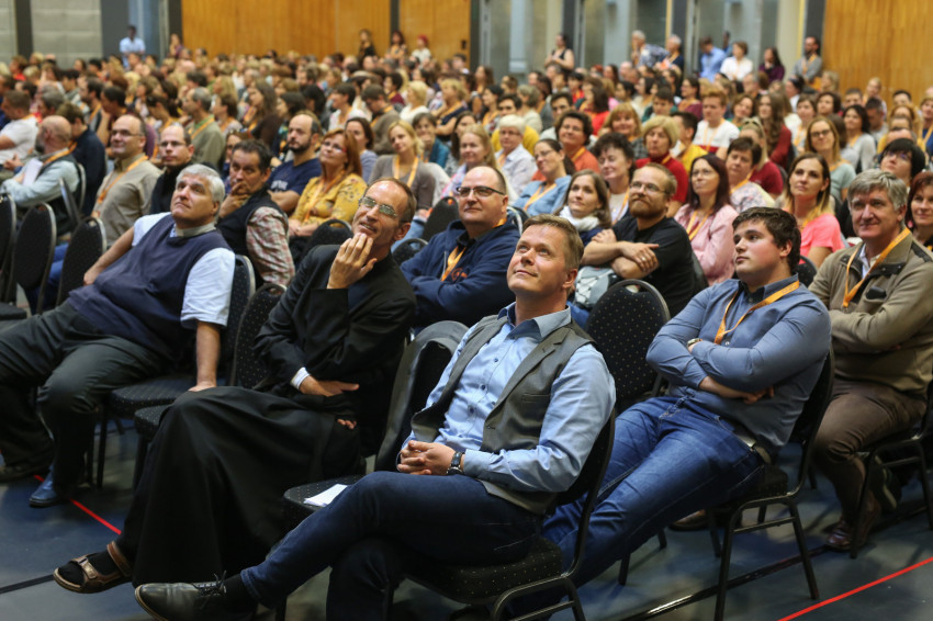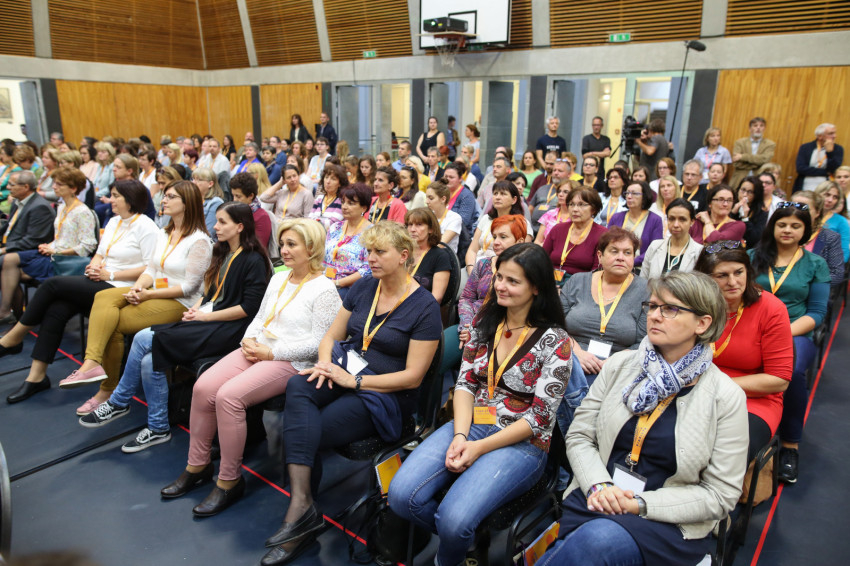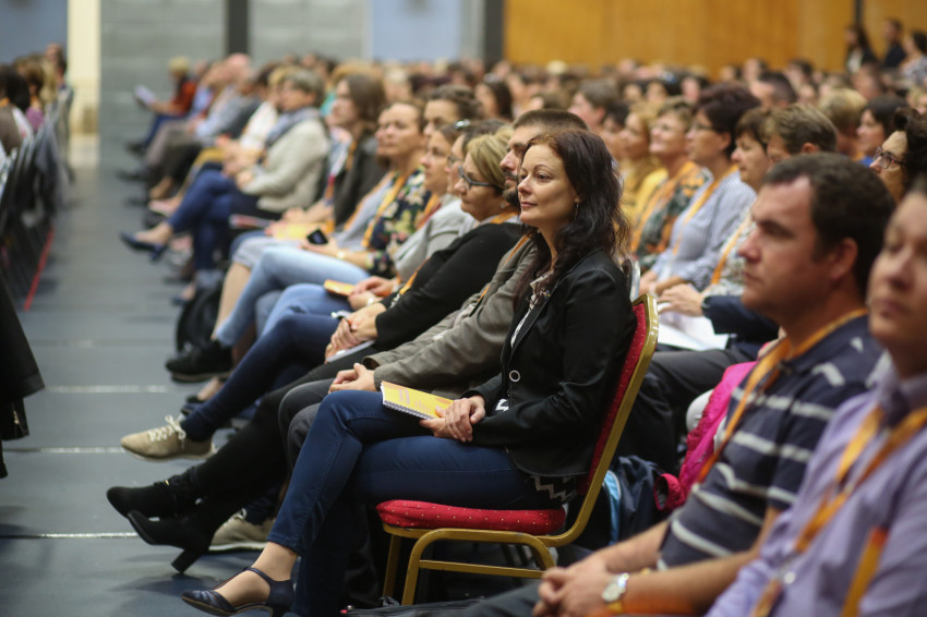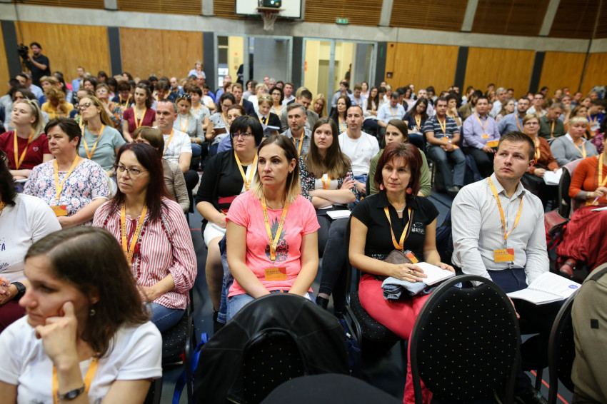 Ötszáznál is többen – a piarista iskolák pedagógusai, intézményvezetői, piarista nővérek, szülők és diákok, jópáran a határon túlról – érkeztek, hogy részt vegyenek a kétnapos találkozón, ahol előadásokra és műhelybeszélgetésekre is sor kerül.