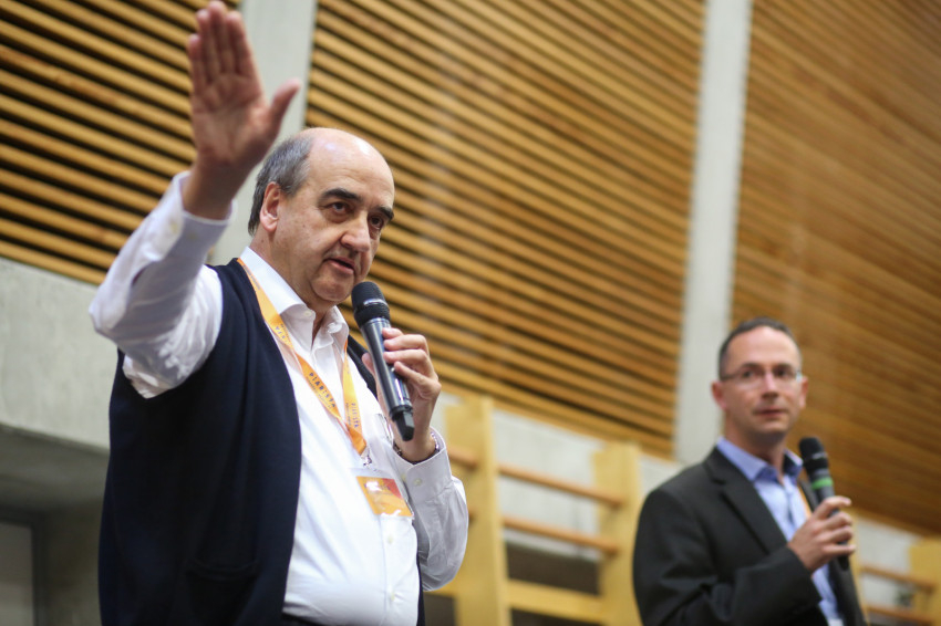Pedro Aguado SP Mire hív ma piarista karizmánk? című előadásában felvetette a kérdést, vajon mit jelent a világban piarista iskolát építeni. A választ is megadta: együtt építeni, álmodni a jövőt, miként azt a mostani konferencia is teszi. A generális előadásában szólt arról is, hogy a rendalapító milyen szenvedélyes módon akart szegényeket tanítani a XVI. századi Rómában, miként keresett válaszokat a valóságra, miként kívánta megváltoztatni a világot, hogyan kereste a lehetőségeket, a feladatokat, melyek a XXI. század piarista iskoláinak is feladata. Mindenki előtt nyitott iskolát akart, közösségeket, új oktatói felfogást – a társadalom megreformálását. Pedro Aguado SP ennek fényében beszélt a mai feladatokról.