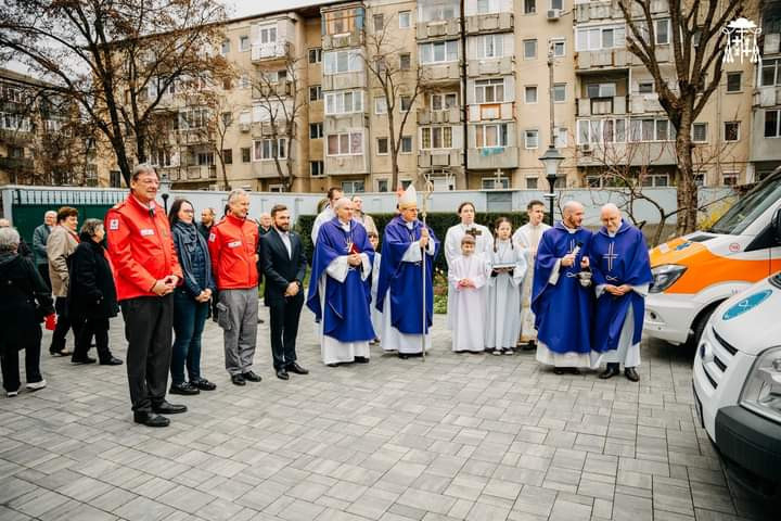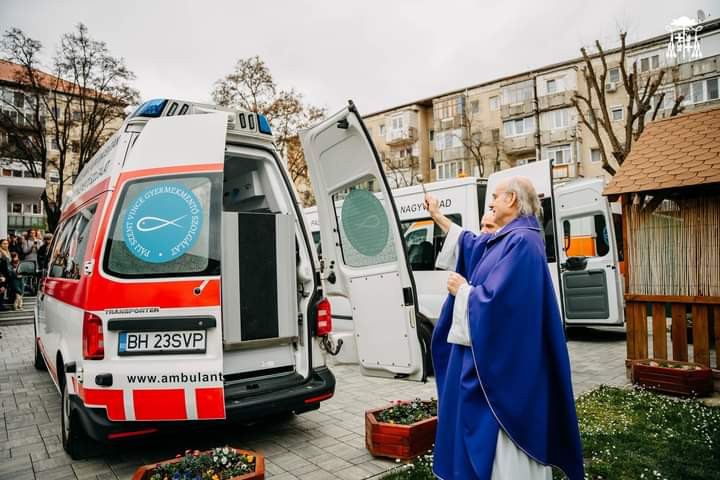 A szentmise végén a plébánia udvarán megáldották Szent Vince szobrát, valamint egy mentőautót és egy kisbuszt.