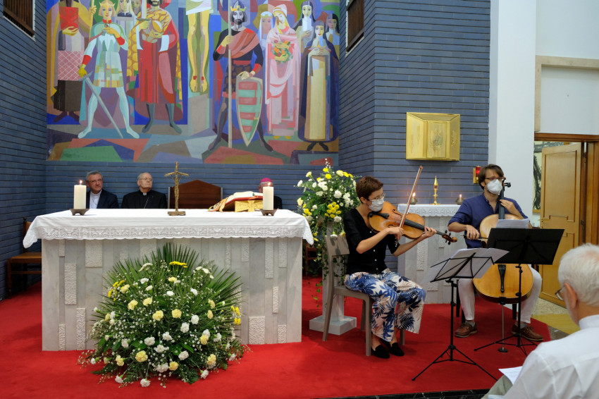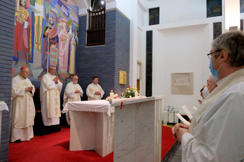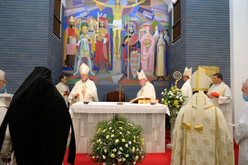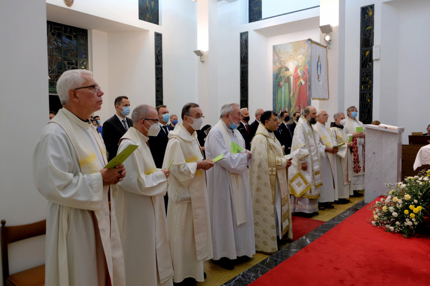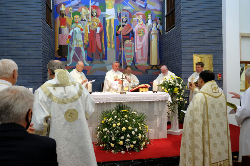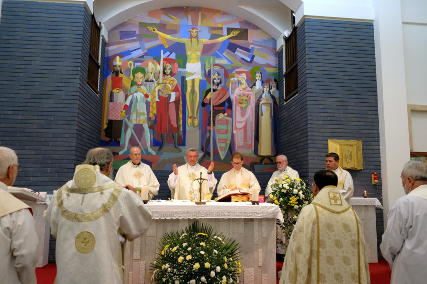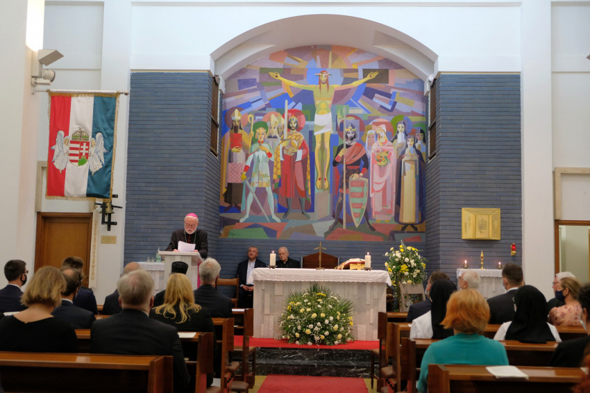 A szentmise kezdetén Veres András püspök köszöntötte a megjelenteket. Mint mondta, Rómába, a Szent István Házba magyarok jöhetnek turistaként vagy zarándokként, és egy kis magyar szigetet találnak itt. Hozzátette, örül, hogy erre a mostani alkalomra sor kerülhet, bár azt szerették volna, ha az egész püspöki konferencia jelen lehet az ünnepen, ám a járvány miatt erre nem volt lehetőség.