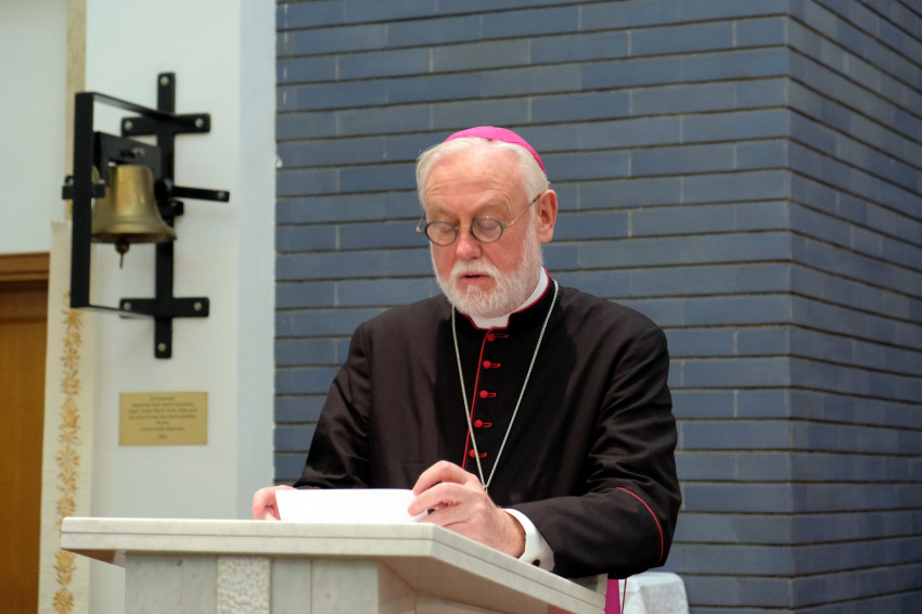 Paul Richard Gallagher érsek a megjelentek köszöntése után megemlékezett arról, hogy néhány nappal ezelőtt Budapesten járt még, s most egy újrainduló magyar zarándokházba kapott meghívást.
