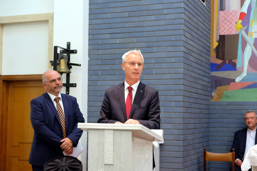 A Pápai Magyar Intézet rektora, az alapítvány elnöke, Németh Norbert köszöntőjében arról beszélt, hogy új várost, új zarándokházat csak az elődök munkájára alapozva, az ő nyomdokaikon haladva hozhatunk létre, mely itt, Rómában különösen is igaz.