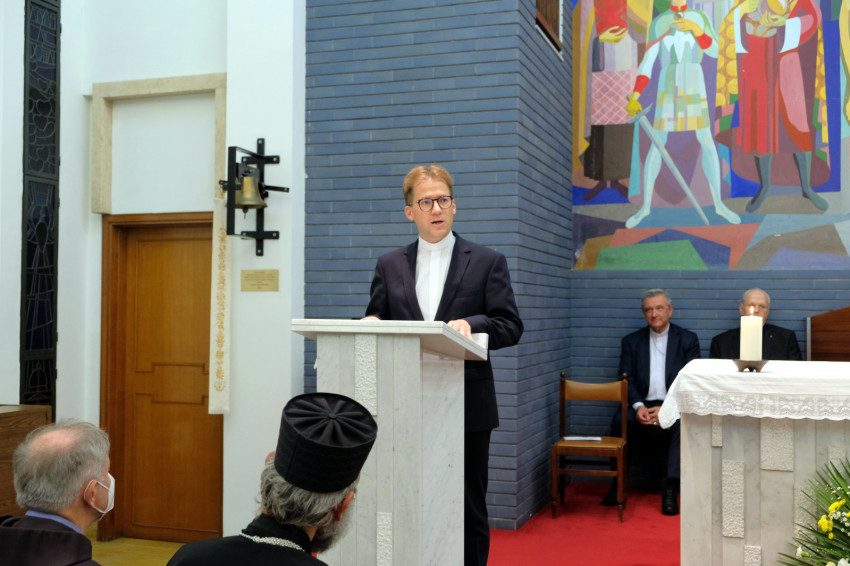 Köszönet illeti a Magyar Katolikus Püspöki Konferenciát és a Magyar Kormányt, hogy felújították e Szent István oltalma alatt álló házat – mondta a Szentszék államközi kapcsolatainak titkára. – Mindazoknak, akik zarándokként e házba jönnek, azt kívánom, teljesedjenek be Morus Tamás szavai: hazájába hazatérve minden zarándoknak eggyel kevesebb előítélete és eggyel több szép emléke van.