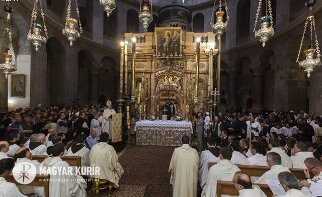 Húsvéti szertartás a jeruzsálemi Szent Sír-kápolnában
