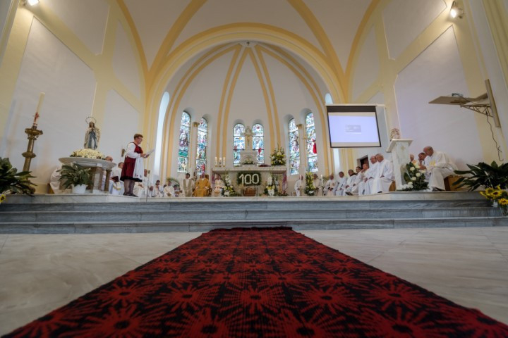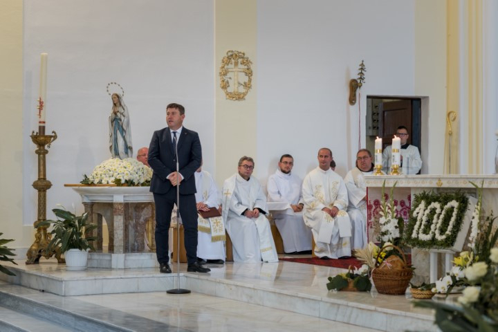 A főpásztor homíliájában kiemelte: „Jézus neve, Emmánuel, annyit jelent: velünk az Isten. Ezt ünnepeljük ma a Szűzanyában is, hogy velünk az Isten. Velünk az Isten az ő példájában, az ő lelkületében, az ő anyai oltalmában. Velünk az Isten: ez azt jelenti, hogy társunk.” Felhívta figyelmünket, hogy akkor tudunk mi is igazi szeretetközösséggé válni, ha mindegyikünk külön-külön elfogadja Isten tervét, ami az ő saját életéről szól. Bátorított, hogy vállaljuk állapotbeli kötelességeink teljesítését, így követve égi édesanyánk példáját, és így utánozva mindazokat, akik a templom gondját viselték és viselik.