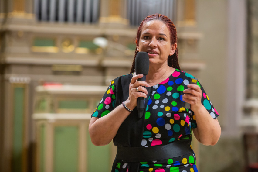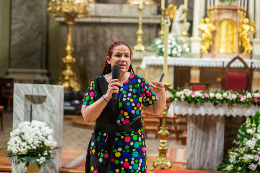 Fodor Réka először is arra biztatott, próbáljuk kitágítani a komfortzónánkat, éppen ezért ő is rövid ujjú ruhában mondta el tanúságtételét arról, hogyan lett missziós orvos. Már kiskorában lenyűgözte Albert Schweitzer példája, szeretett volna ő is missziós orvos lenni Afrikában, de ez az álom harminc évig nem valósult meg. Első ugandai útja után született meg az első könyve, majd alapítványt is hoztak létre, amit Horváth Zoltán atya is támogatott, meghívta őket a Szent Teréz-templomba. 2019-ben aztán férje, Greguss Sándor (a nyáron ALS-betegségben elhunyt író) és egyik lányuk, Anna is elkísérték nigériai missziójára, Onitsába. Hatalmas hitet tapasztaltak a keresztényüldözés ellenére, az országban mindennapos a vértanúság.