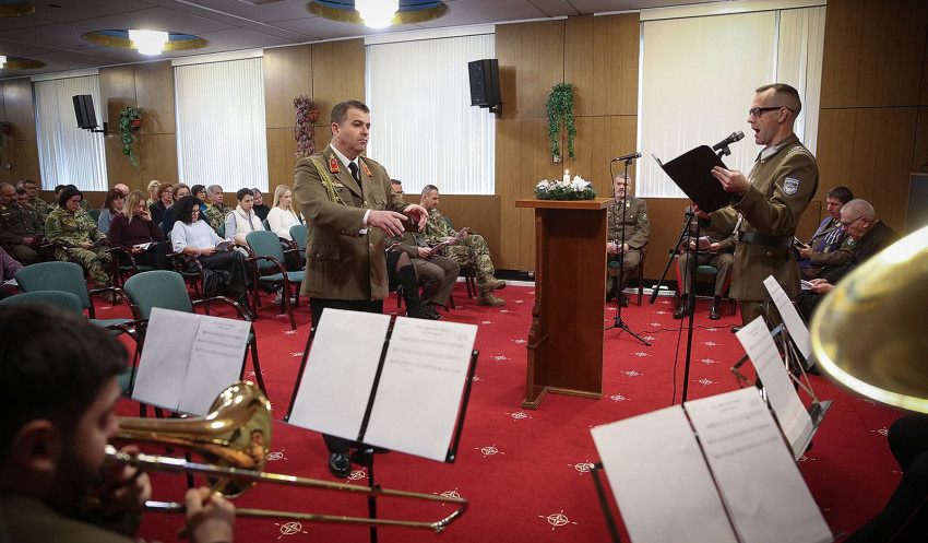 Beszédében Szabó Ferenc őrnagy, evangélikus tábori lelkész kiemelte: a karácsony és az adventi készülődés időszaka nem csak a keresztény ünnepkört mozgósítja, hiszen „mindannyian keressük azt az Istent, aki egészen közel jött hozzánk”.