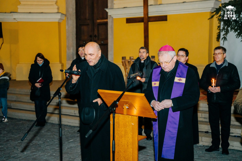 Böcskei László nagyváradi megyéspüspök üdvözlő beszédében elmondta: szeretnék, ha az adventi találkozás mindenkinek örömet okozna. „Mi már tizenegyedik alkalommal találkozunk itt, a egyházmegye főtemploma előtt. Összetartozunk, egy család vagyunk, és szeretnénk gondoskodni másokról, megosztani velük örömünket: Isten velünk van” – fogalmazott.