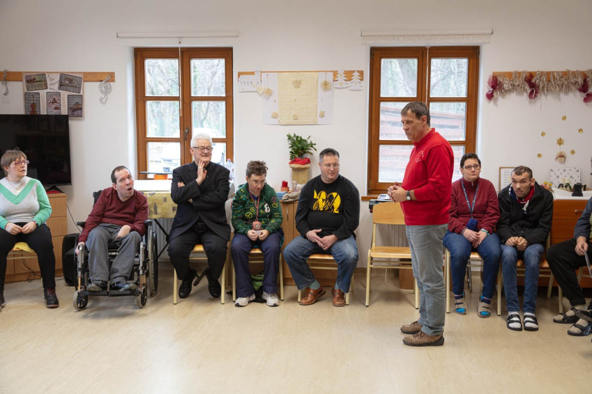 Spányi Antal püspök az ünnepi alkalmon elbeszélgetett az intézmény gondozottjaival, akik közül sokan ilyenkor élhetik meg a karácsony szeretetteljes, közös örömét.