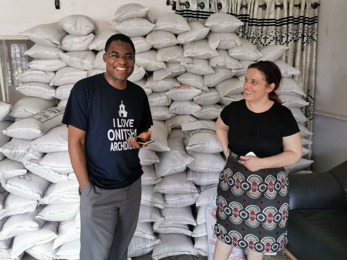 – Igen, orvosmisszióba indultam, 3 millió forintot kaptunk a Hungary Helps Programtól arra, hogy a legszegényebbeket szűrjük a fertőző betegségekre, és el is lássuk őket. Megérkezve láttuk, hogy ennek most nincs értelme. Engedélyt kértem a Hungary Helpstől, és a pénzből gyorsan vettem maszkokat, védőfelszereléseket, kesztyűt, fertőtlenítőszert, szappant. Már másnap nem lehetett kapni semmit. Volt tapasztalatom, hiszen három hét csúszással éltük meg itt, amit mi is otthon, tudtam, mi következik az iskolák bezárása után. Lagos még nem volt lezárva, ott meg tudtunk venni mindent. Tettünk a kórház bejáratához kézmosókat folyó vízzel, szappannal. A betegeknek is adunk maszkot. Rizst is időben tudtunk venni, Bazil atya, aki a tizenkét kórházat működtető egyházmegye egészségügyi koordinátora, most az élelmiszer-elosztásban is segít. Minden szállítmány az érsekségre érkezik, aztán a lehető legrövidebb időn belül kiviszik a plébániákra, és az atyák döntik el, kik a leginkább rászorulók.