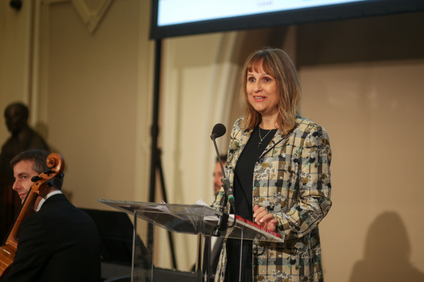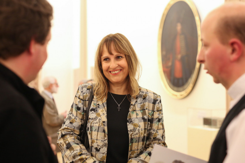 Kontsek Ildikó, a kiállítás egyik kurátora, egyben a megnyitó házigazdája köszöntötte az látogatók népes seregét, köztük Molnárné Szunyi Barbarát, a Vigadó igazgatóját.