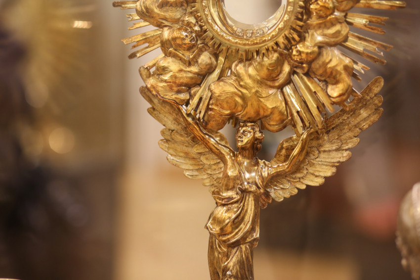 Erdő Péter összefoglalóan elmondta, a kiállítás egy évezredes tiszteletről, a mindennapokat átható mély vallásosságról tesz tanúságot. Erről beszélnek az Eucharisztia ünnepléséhez kapcsolódó liturgikus tárgyak, a festmények, de a hétköznapi életből vett, művészi igénnyel díszített eszközök is. Az ív napjainkig ér: fényképek, rövidfilmek mutatják be az Eucharisztia ma is élő kultuszát, utalt a csömöri úrnapi körmenet hagyományára a bíboros.