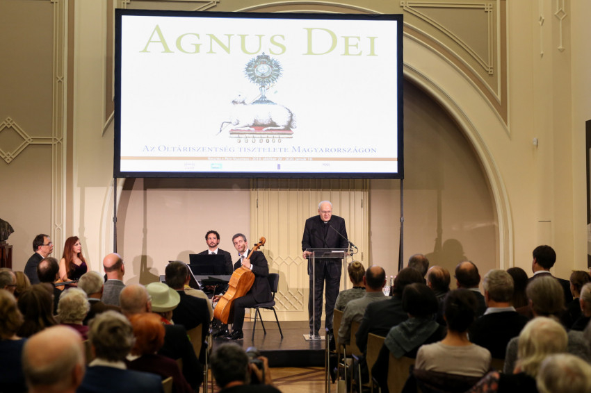 Erdő Péter bíboros, prímás megnyitó gondolatai nemcsak rövid összefoglalót adtak arról, hogyan épül fel az Oltáriszentség tisztelete Magyarországon alcímű kiállítás, de két alkotást kiemelve, személyes élményét is megosztotta a népes hallgatósággal a főpásztor. Franz Anton Maulbertsch Utolsó vacsora című festményét oltárképnek rendelték, de a refektórium falára került. „A művész meglehetősen illuminált állapotban festette, ami meg is látszik a képen. A társaságnak az Üdvözítő körül van egy emelkedett jellege. Joggal érezhették az alkotást blaszfémikusnak, mégis megérinti az embert, hogy Maulbertsch csapongó lelke mennyire ráérzett arra, hogy az utolsó vacsorán valami olyasmi történik, ami a földi dimenziókat meghaladja. Megérintette a titok, és ezt az eksztázist ki is fejezi az ábrázolás.