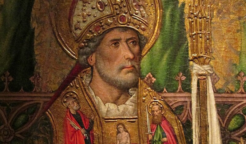 Fotó: Wikipédia (Tomás Giner: Szent Ágoston; a Szent Ágostont és Szent Lőrincet ábrázoló festmény részlete; 1458)