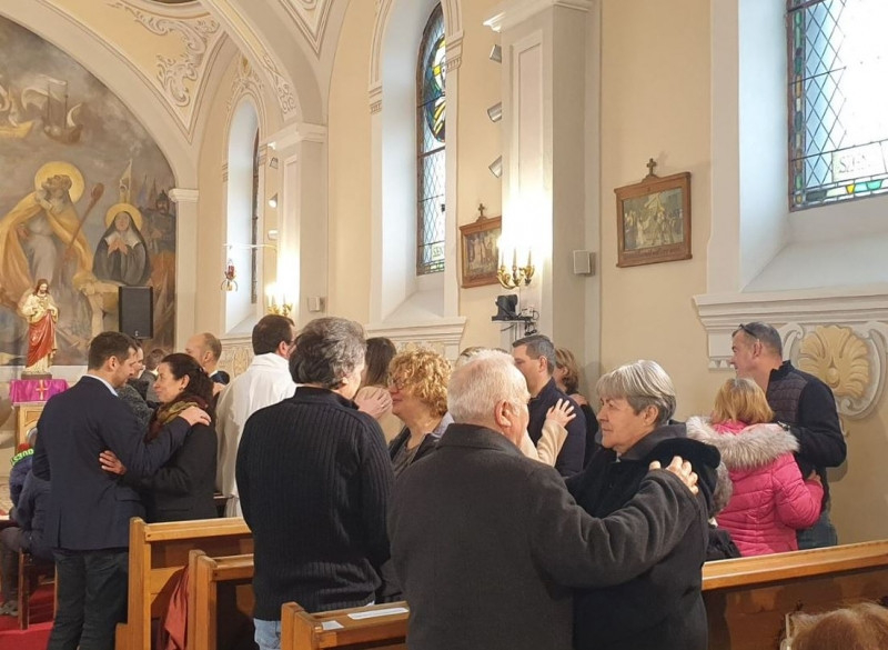 A tanúságtétel után a házaspárok megáldották egymást, majd Vukovich Márton atya is megáldott bennünket.