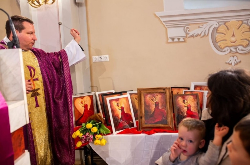 Az áldások után a plébános megáldotta azokat a festményeket, amiket a feleségek készítettek férjüknek házasságuk, szerelmük megújításaként.