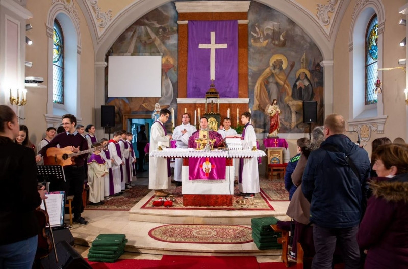Február 18-án, vasárnap került sor a házasság hetének záró szentmiséjére, amit Vukovich Márton plébános celebrált. Gitáros zenekarunk tagjai között énekelt Dolhai Attila színész, énekes.