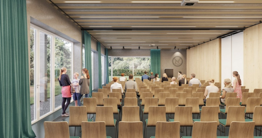 A hármas, hangszigetelt osztású, egymástól függetlenül használható terek kialakítására is alkalmas, a kor igényeinek megfelelő felszereltséggel rendelkező előadóterem konferenciák, összejövetelek megtartására is kiváló lehetőséget biztosít.