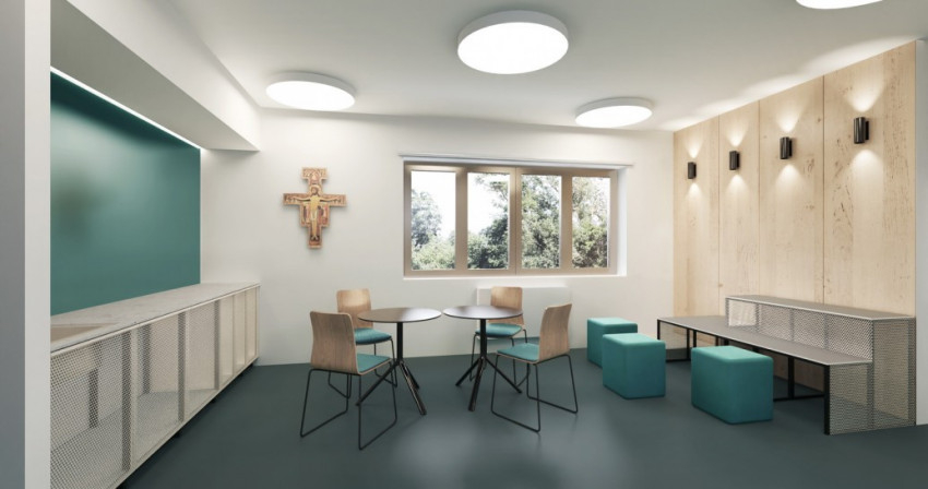 Az intézményben egy kápolna, három hittanterem, egy 70 négyzetméteres sportterem is kialakításra került, illetve kiszolgáló helyiségek és raktárak is találhatók benne.
