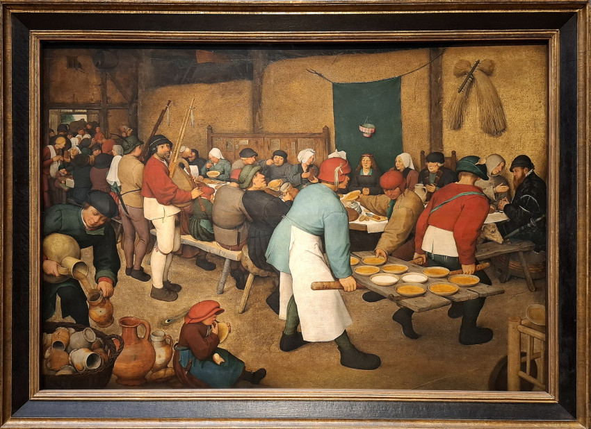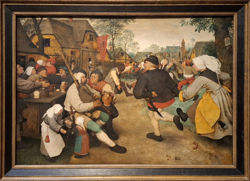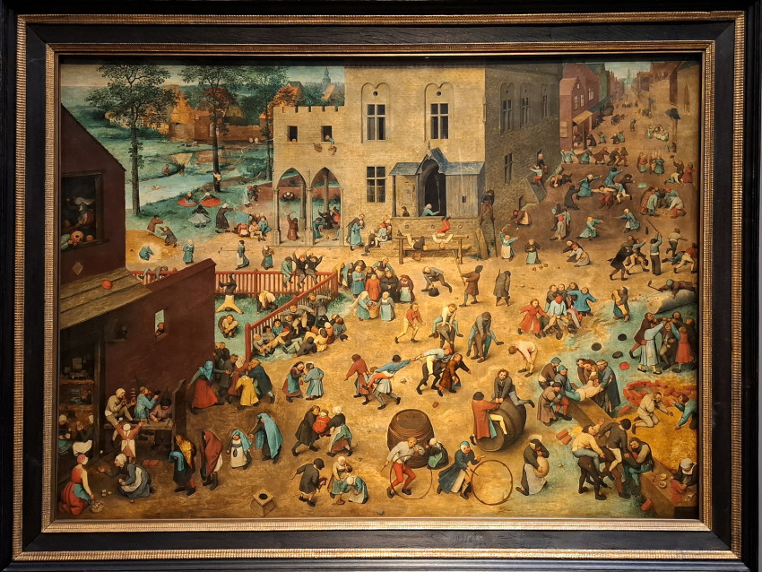A Pieter Brueghel műveit bemutató termekben aztán megelevenedik az élet: lakodalomban táncoló parasztok, téren játszó gyerekek képei töltik be a kiállítótermet. Vagy éppen a borzalmas betlehemi gyermekgyilkosság ábrázolása... Egy másik festményen nagy igyekezettel épül a Bábel tornya. Még csak félig van készen a hatalmas építmény, így aztán beleláthatunk a munkálatok folyamatába, részleteibe. A legfelső szint már a felhőket súrolja. Varázslatos táj, zsúfolt város, jobbról pedig a tenger veszi körbe a monumentálisra tervezett tornyot. Brueghel hihetetlen fantáziával, részletező gazdagsággal megfestett képei elképesztő élményt nyújtanak.