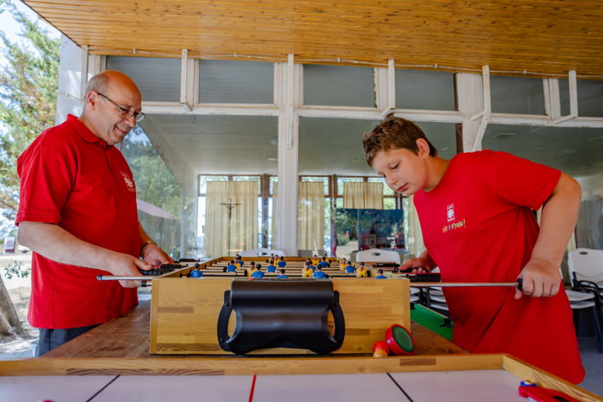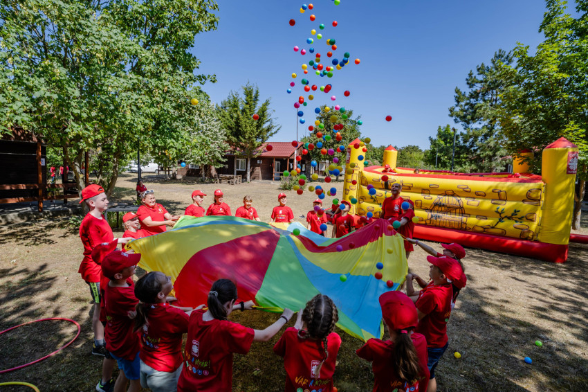 Ezen a héten a Veszprémi Főegyházmegye területéről, Lesenceistvándról és Zalavégről érkeztek táborozók. A legkisebb nyolc, a legnagyobb tizenhárom éves. Szalontai István pókaszepetki plébános, karitászmunkatársak és más segítők vezetik a hétfőtől péntekig tartó turnust, sok programot, foglalkozást, odafigyelést nyújtva a fiataloknak. Vannak, akik még soha nem voltak táborozni, odáig vannak a közös játékoktól, és hogy a Balatonban milyen jó pancsolni.