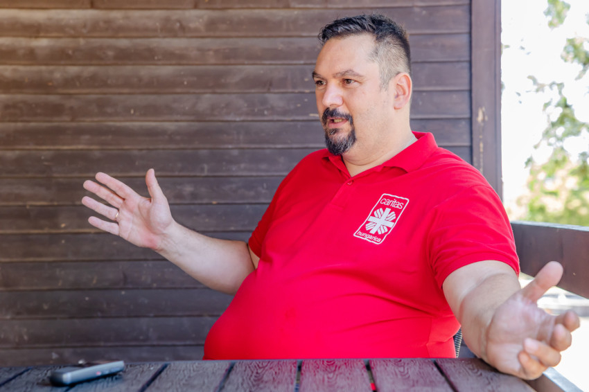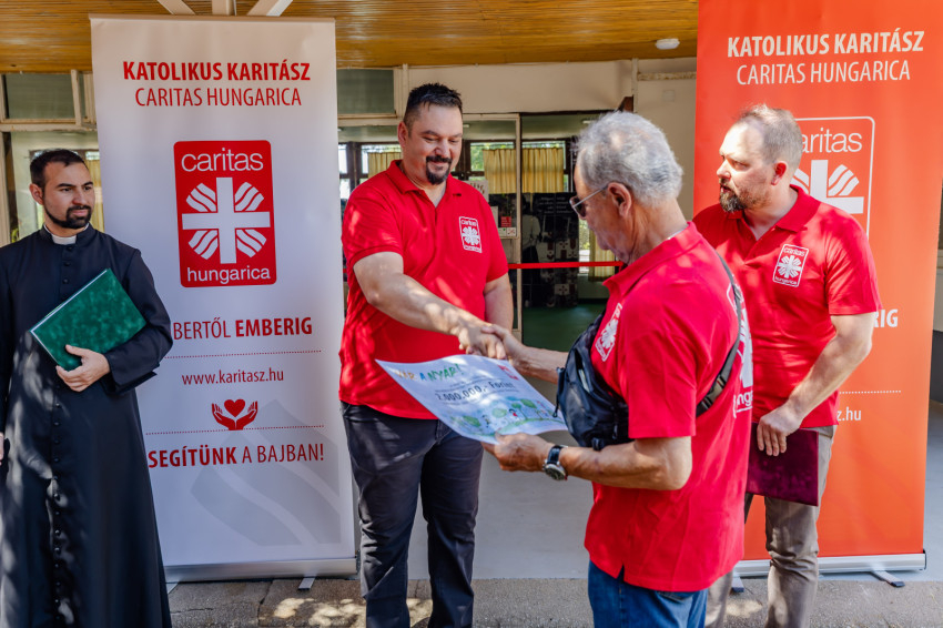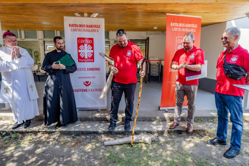 – fogalmazott Zagyva Richárd. – Az adományokon túl pályázati forrásokra, különböző adományozó vállalatok nagylelkű felajánlásaira tudunk építeni, valamint külföldi kapcsolatokra. Klaus Höhn húsz éve támogatja a Katolikus Karitászt Németországból. Jószolgálati nagykövetünkké fogadtuk, rendszeresen segíti a munkánkat szállítmányokkal, adományokkal. Most a tábor javára adománygyűjtést indított, és elhozta nekünk a kétmillió forintnyi összeget, sőt még egy saját maga által faragott botot is ajándékozott nekem, ami nagyon sokat jelent. A köztünk lévő kapcsolat nem csupán egy távoli, adományozói kapcsolat. Ő szívből, és lehet mondani, barátsággal támogat minket, aminek sok jelét adta korábban is.”