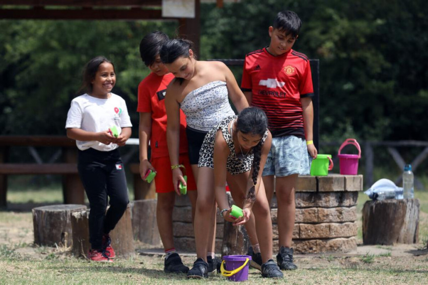 Somogyvári Fanni, az önkéntescsoport vezetője elmesélte, hogy öt csapatba osztották a gyerekeket: az Afrika-téma alapján maszáj, zulu, himba, bantu, tuareg törzsekre. A kerettörténet szerint a törzseknek egységben és szeretetben kell élniük. A csapatok akkor kapnak pontot, ha közösen teljesítik a feladatokat, mindenki együtt dolgozik, minden csapattag ott van. Az első napon még nehéz összhangot teremteni, de Fanni varázsol, hol jókedvet, hol csendet, mindkettőre szükség van ahhoz, hogy jól érezzék magukat együtt. A csapatok pontokat kapnak az ügyességükért, de a figyelemért és a szófogadásért is. Működik, ahogy telik az idő, már egymást buzdítják a gyerekek.