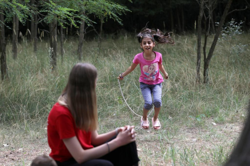 Különleges színfoltja a tábornak egy 21 éves marokkói lány, Manal, aki előző nap érkezett Budapestre, és kilenc hónapon át dolgozik majd a játszótérprogramban. Európai uniós pályázatból nyerte a Szeretetszolgálat a lehetőséget, még ketten érkeznek hamarosan. Megkönnyíti Manal számára a beilleszkedését, hogy a kicsik viszik magukkal, folyamatosan beszélnek hozzá, kérdezgetik. Meglepően sokan vannak a gyerekek közül, akik szívesen és jól társalognak alapszinten angolul, még a kisebbek között is.
