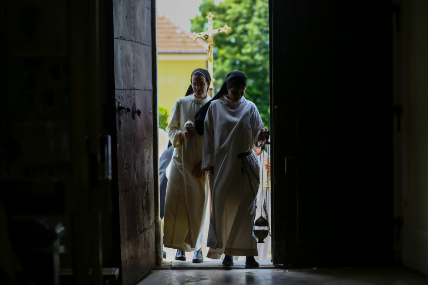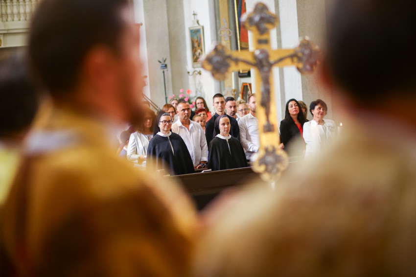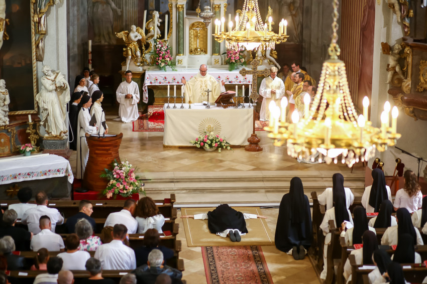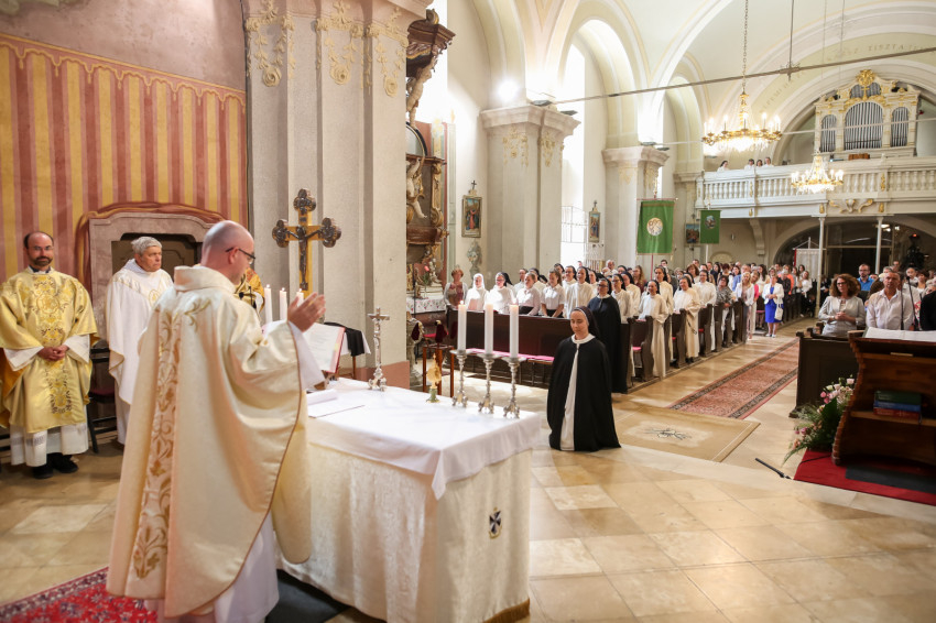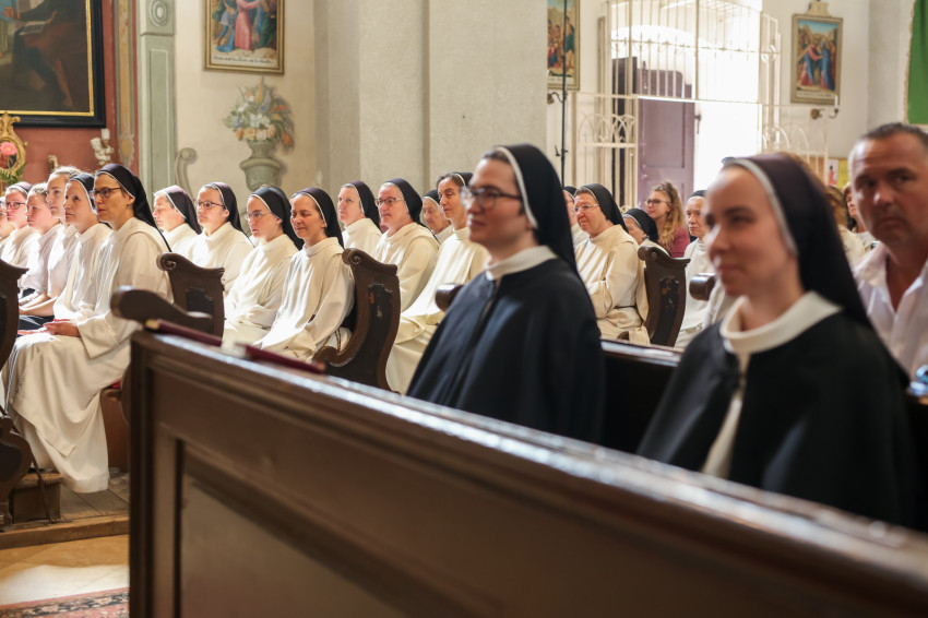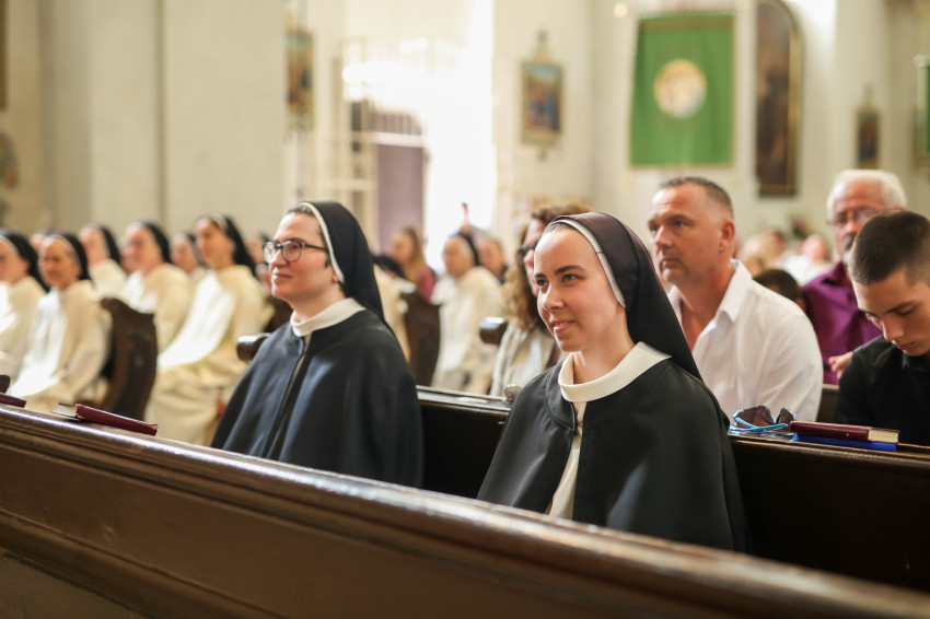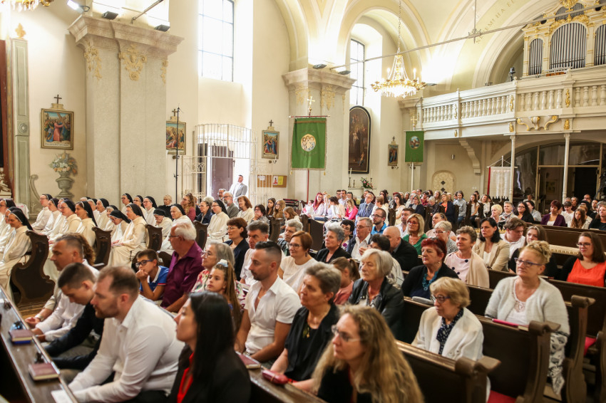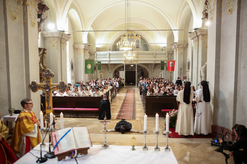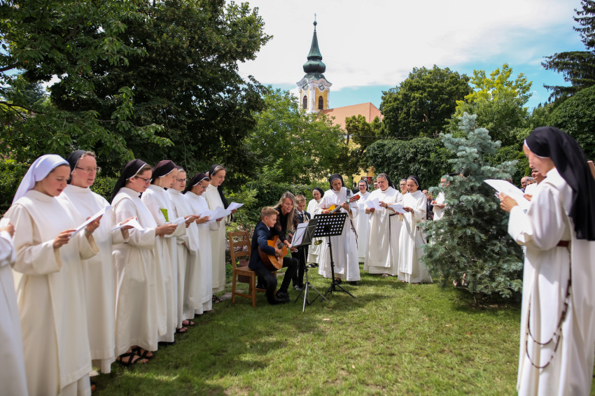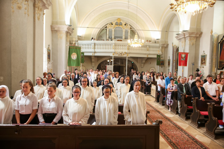 Megtelt a budakeszi Havas Boldogasszony-templom. A fogadalmat tevő nővér délvidéki, a nyugat-bácskai Bezdán szülötte. Népes családja, nagy rokonsága, barátai, szerzetestársai, egyetemi évfolyamtársai ünnepelnek ma a domonkos nővérek közösségével.