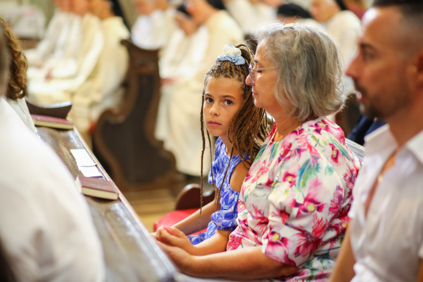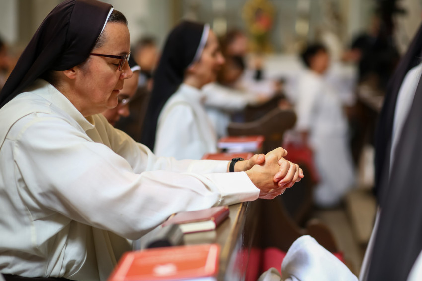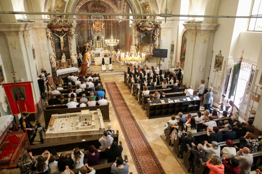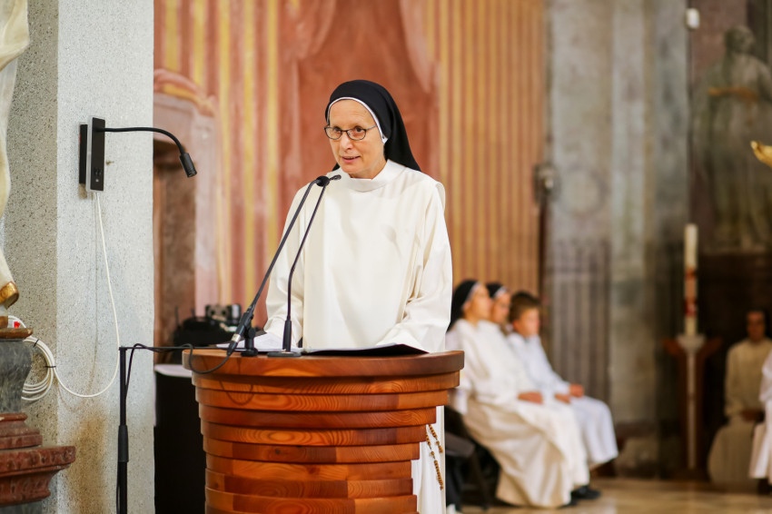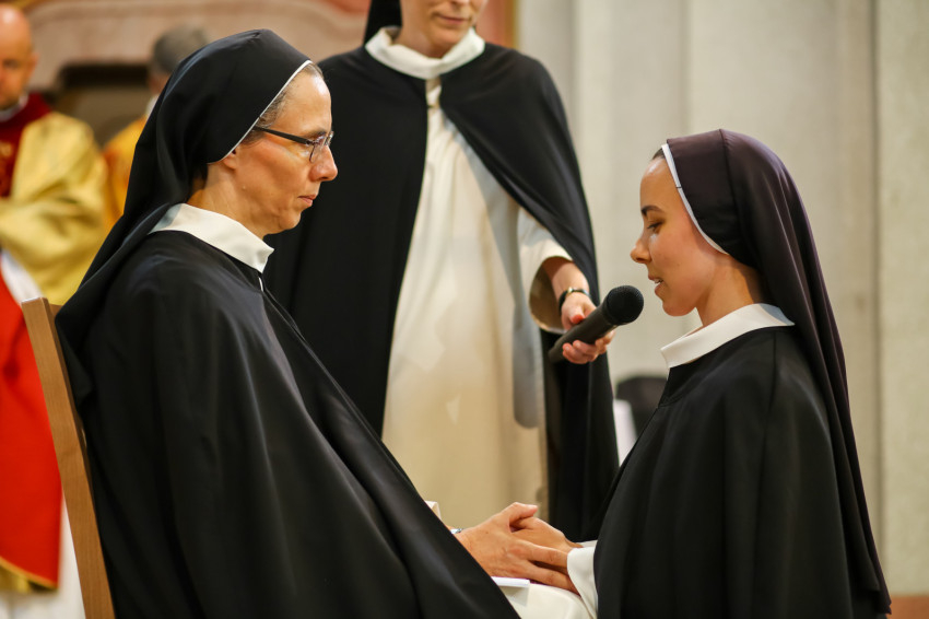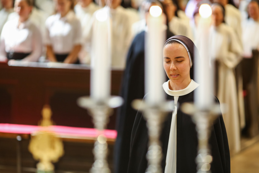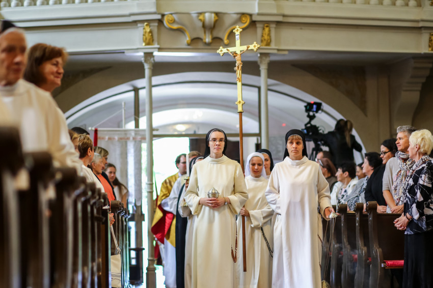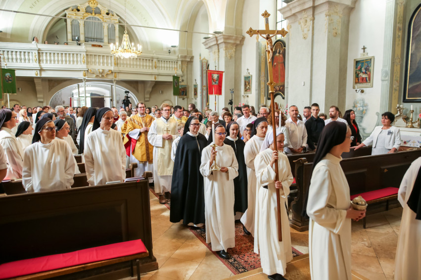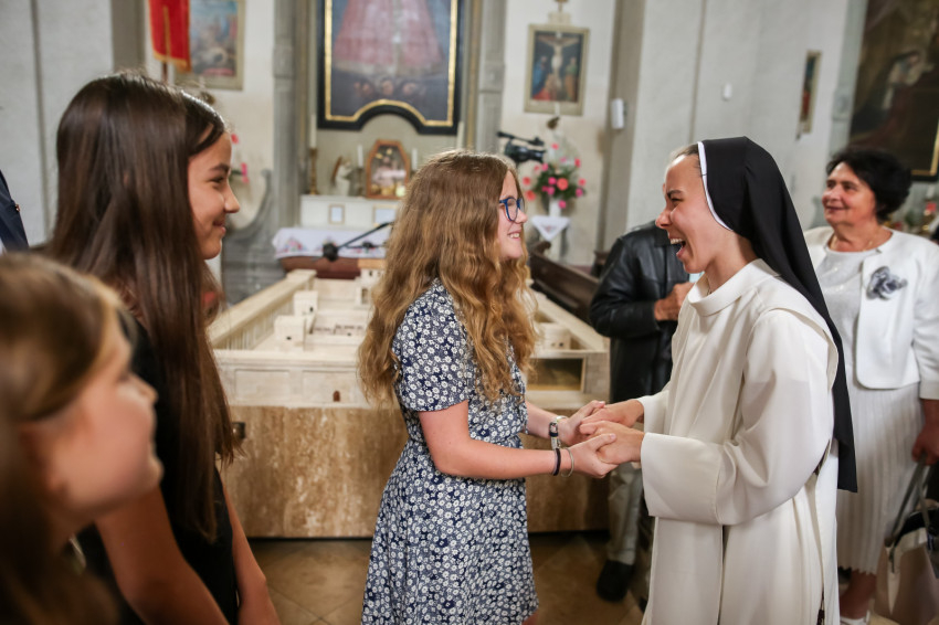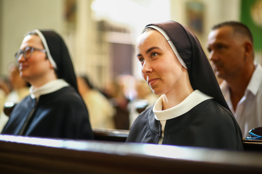 Megtelt a budakeszi Havas Boldogasszony-templom. A fogadalmat tevő nővér délvidéki, a nyugat-bácskai Bezdán szülötte. Népes családja, nagy rokonsága, barátai, szerzetestársai, egyetemi évfolyamtársai ünnepelnek ma a domonkos nővérek közösségével.