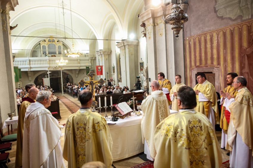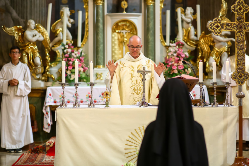 Szentmise keretében tesz Bernadett nővér fogadalmat. A főcelebráns és szónok Puskás Antal OSPPE pálos tartományfőnök. Nagy számban koncelebrálnak paptestvérek, többen érkeztek a Vajdaságból.