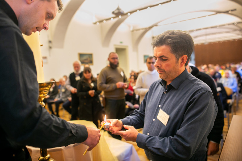 Az egyházmegyei küldöttek a húsvéti gyertyáról átvették a lángot mécseseikre, amelyeket azután egymás mellé helyeztek, ezzel jelképezve, hogy a húsvét, a megváltás és a feltámadás fényénél végzik a szolgálatukat, hordozzák terheiket, élik meg örömeiket, így formálódnak és merítenek erőt az előttük álló feladatokhoz.