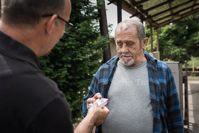 Pista bácsi kutyája is lelkesen fogadja a látogatót. Jól ismeri már, amikor a gazdája kórházba került a télen, Mányoki Mihály járt ki hozzá minden áldott nap, hogy megetesse.