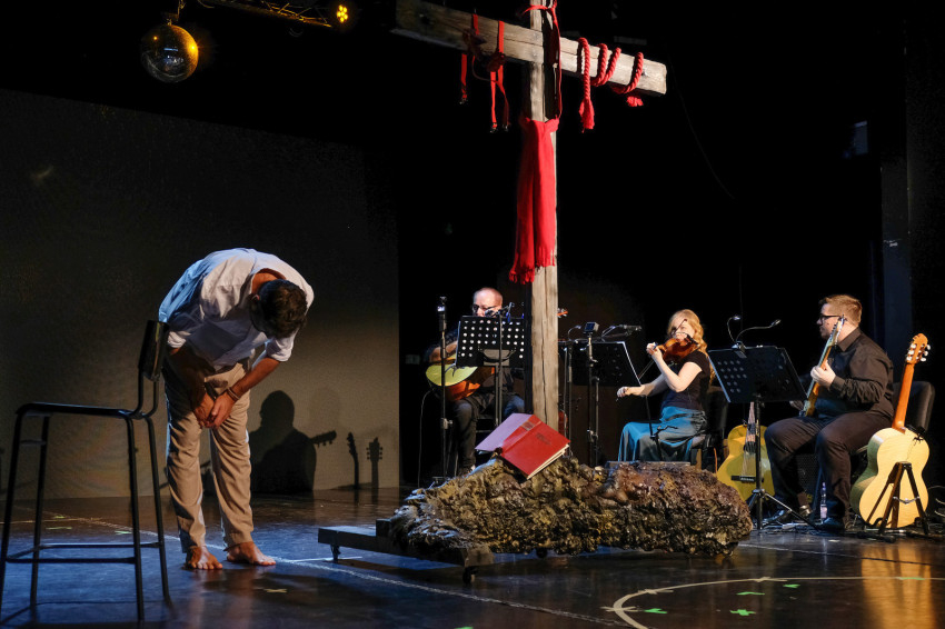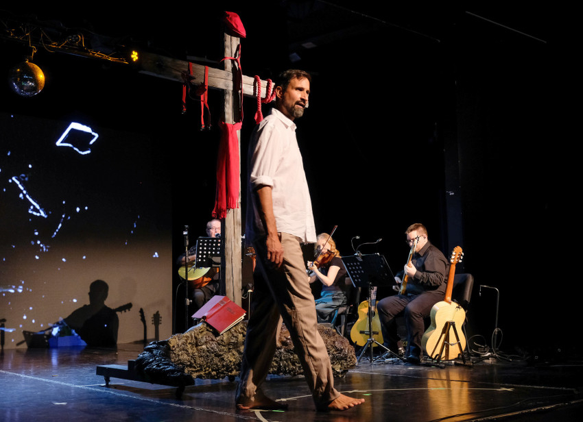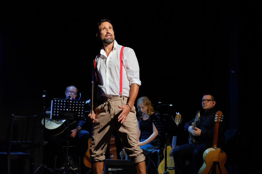 Előzetes aggodalmam, hogy egy hagyományos musicalt fogok látni, az ezrediket – kevés próza, sok zene, tánc, ugrándozás, fényeffektus – pillanatok alatt megszűnt. Monodrámát látunk, Koródi Szilárd csodálatos előadásában, és egy ugyanilyen színvonalú koncertet a Borka Zsolt vezette zenekartól. Az akusztikus gitár, a gyönyörű hegedűszó, a torkában kivételesen értékes kincset hordozó Cselőtei Anna énekhangja a hatvanas évek popzenéjére emlékeztet, amikor a zenészek a ma már szinte kötelező kellékek, showelemek, tűzijátékok nélkül, csupán az ösztönükből fakadó tehetségük révén ragadtatták el a közönséget.