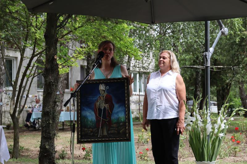 Barna Tímea intézményvezető köszönetet mondott az intézményt három éve fenntartásába vevő Katolikus Szeretetszolgálatnak a folyamatos támogatásért, a megvalósuló infrastukturális fejlesztésekért. Kiemelte Bertáné Szőrős Mária telephely-vezető szeretetteljes, határozott és korlátokat nem ismerő munkáját, aki a 160 ember ellátásáért, és a 70-nél több kollégáért felel immár több mint 30 éve. Barna Tímea egy Szent Lajost ábrázoló festményt ajándékozott az intézménynek, hiszen a korábban Nefelejcs házként működő otthon három éve új nevet kapott a szeretetszolgálattól.