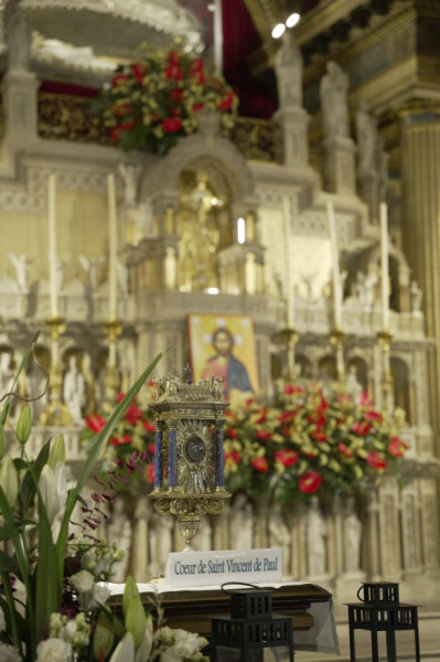 Az ünnepség csúcsa a párizsi Szent Eustachius-templomban bemutatott ünnepi szentmise volt, melynek főcelebránsa Emmanuel Tois párizsi segédpüspök volt. A koncelebráló 20 püspök és 150 rendtárs, a Vincés Család tagjai, valamint a templom magasztossága és a gondosan szervezett liturgia mind hozzájárultak ahhoz, hogy az ünnep valóban lelkileg felemelő és csodálatos élmény legyen.
